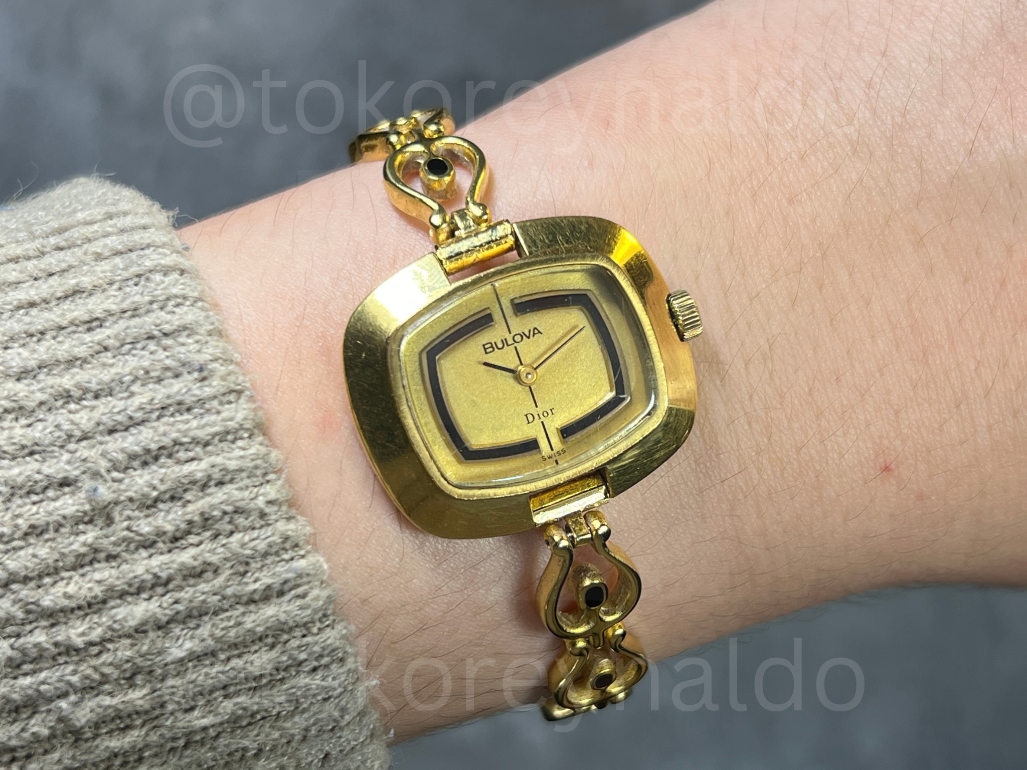 VINTAGE 1970’s BULOVA x DIOR 2-834945 N4 CUSHION / TV SHAPE G0LD PLATED