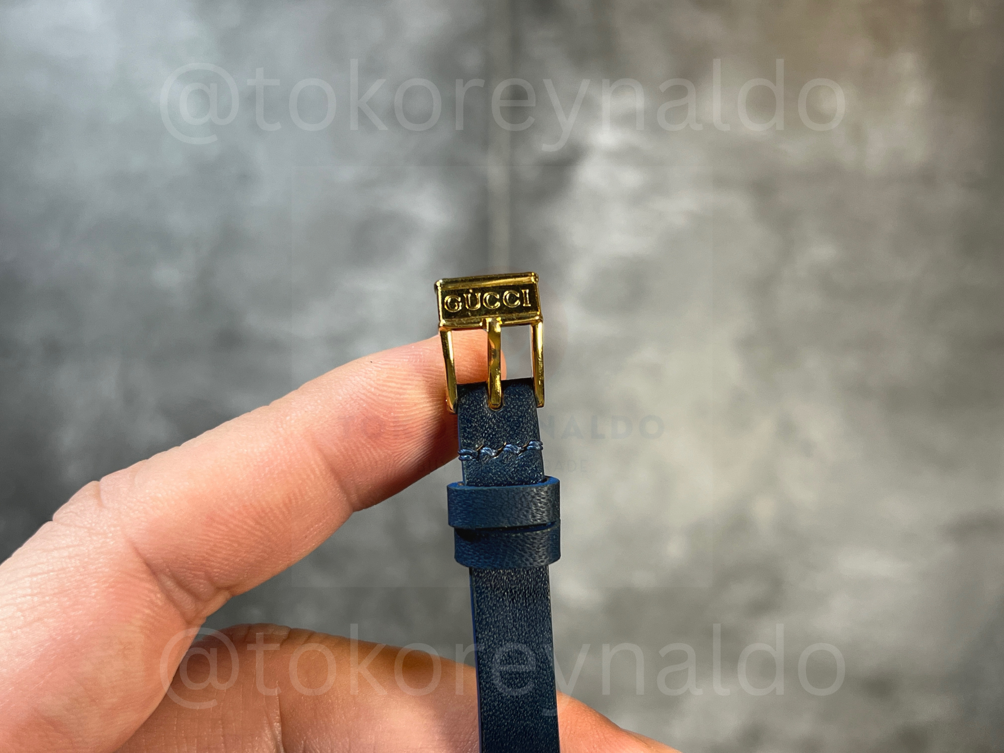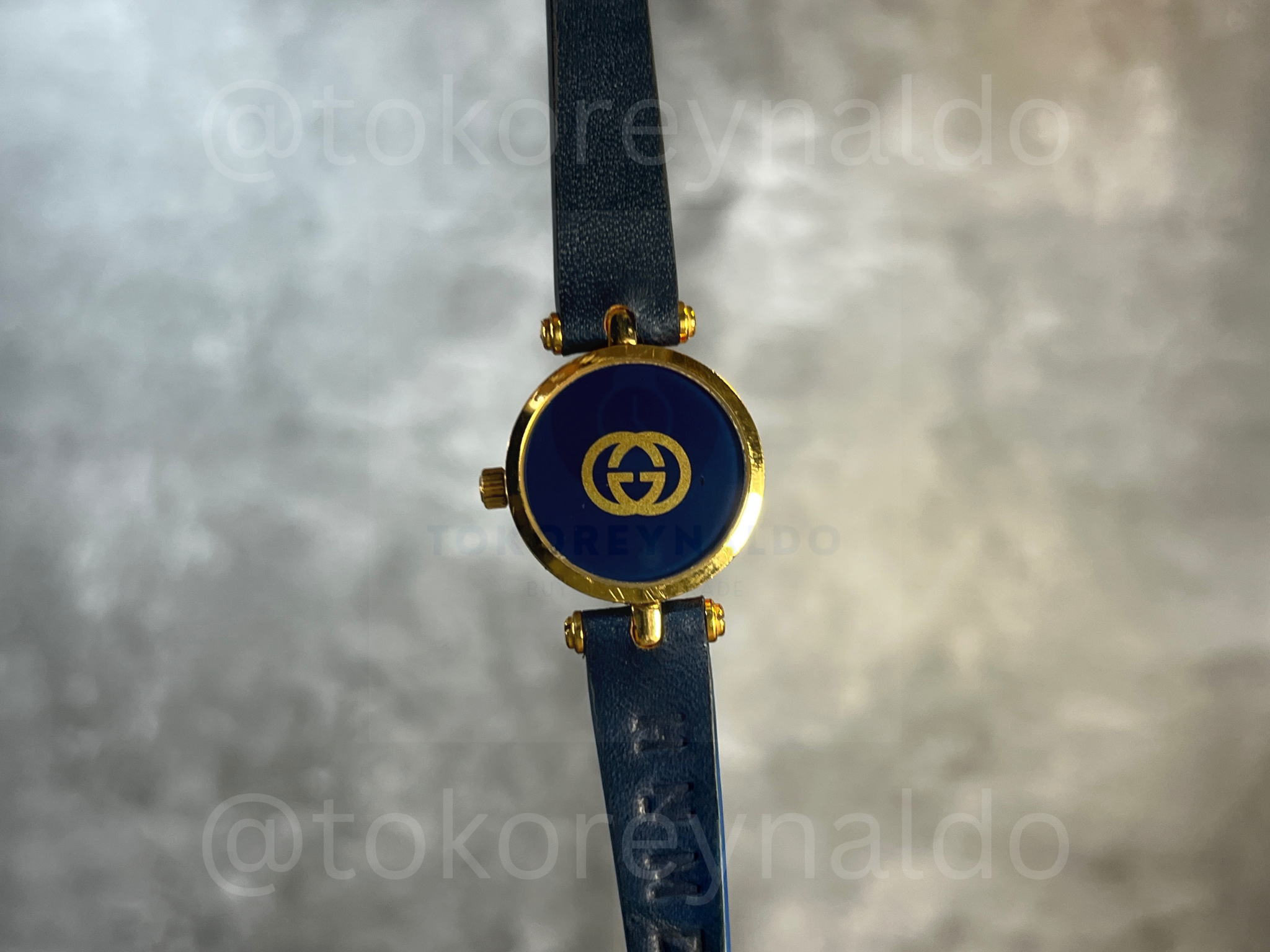 JAM TANGAN VINTAGE GUCCI 2000L SMALL ROUND G0LD PLATED BLUE DIAL ROMAN INDEX (LX1991)