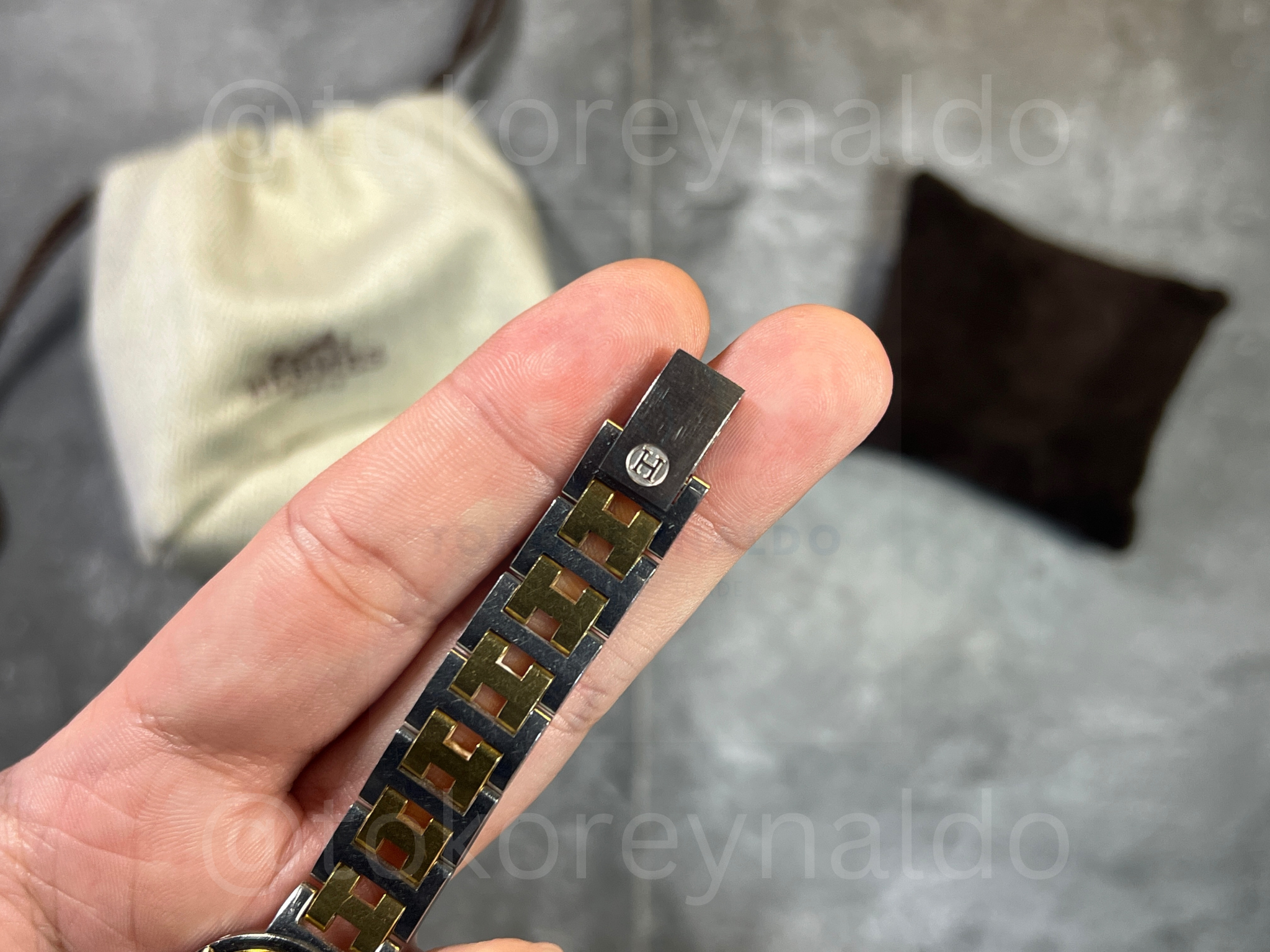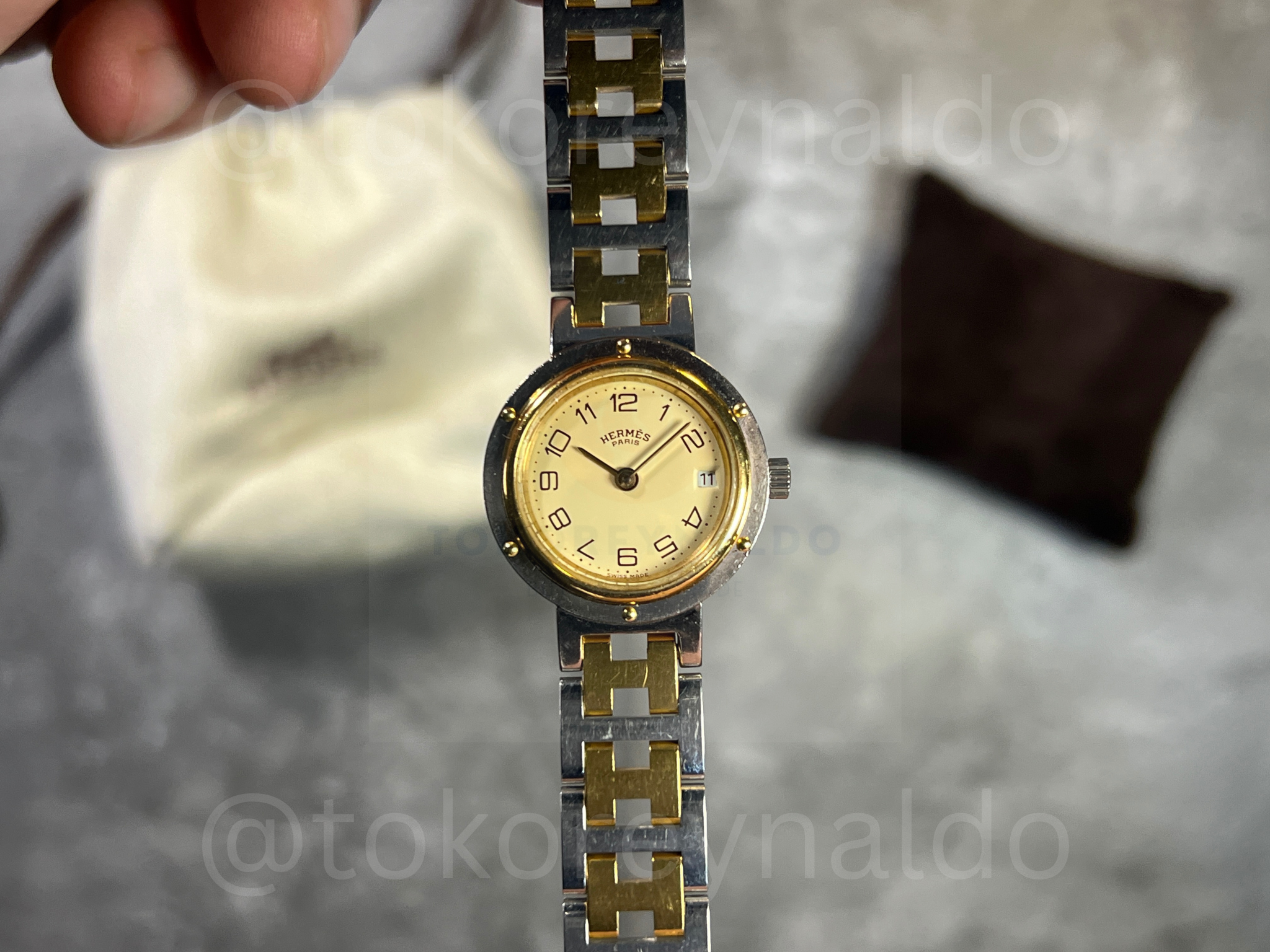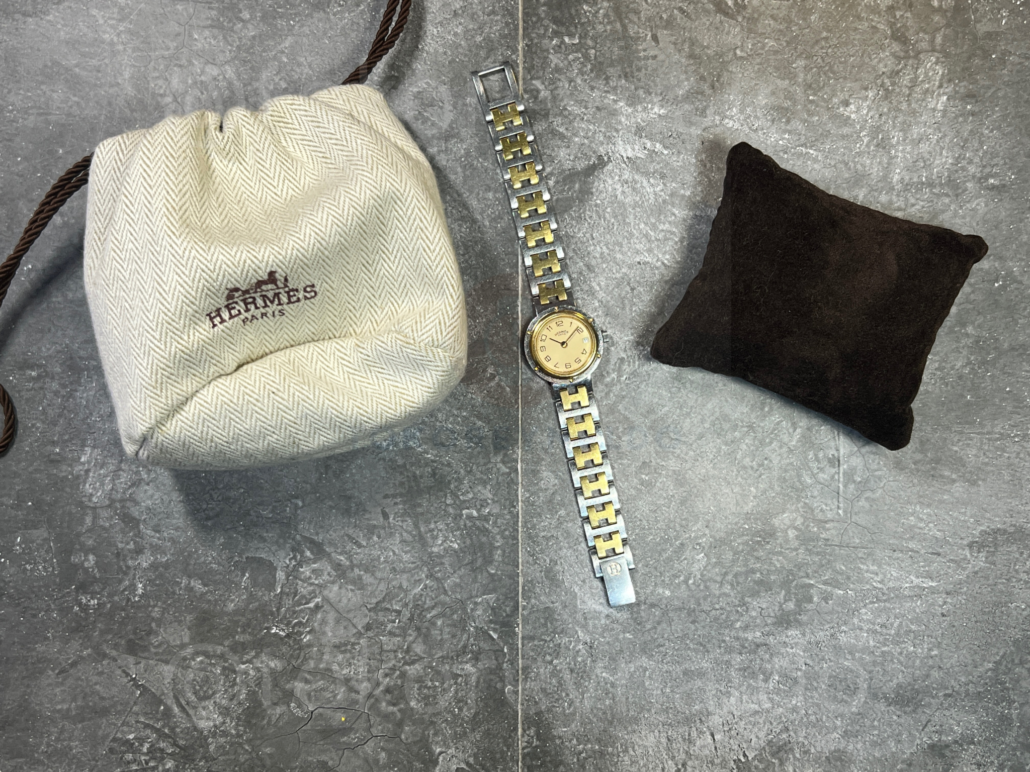 JAM TANGAN VINTAGE HERMES CLIPPER ROUND TWO TONE CREAM DIAL (LX2028)