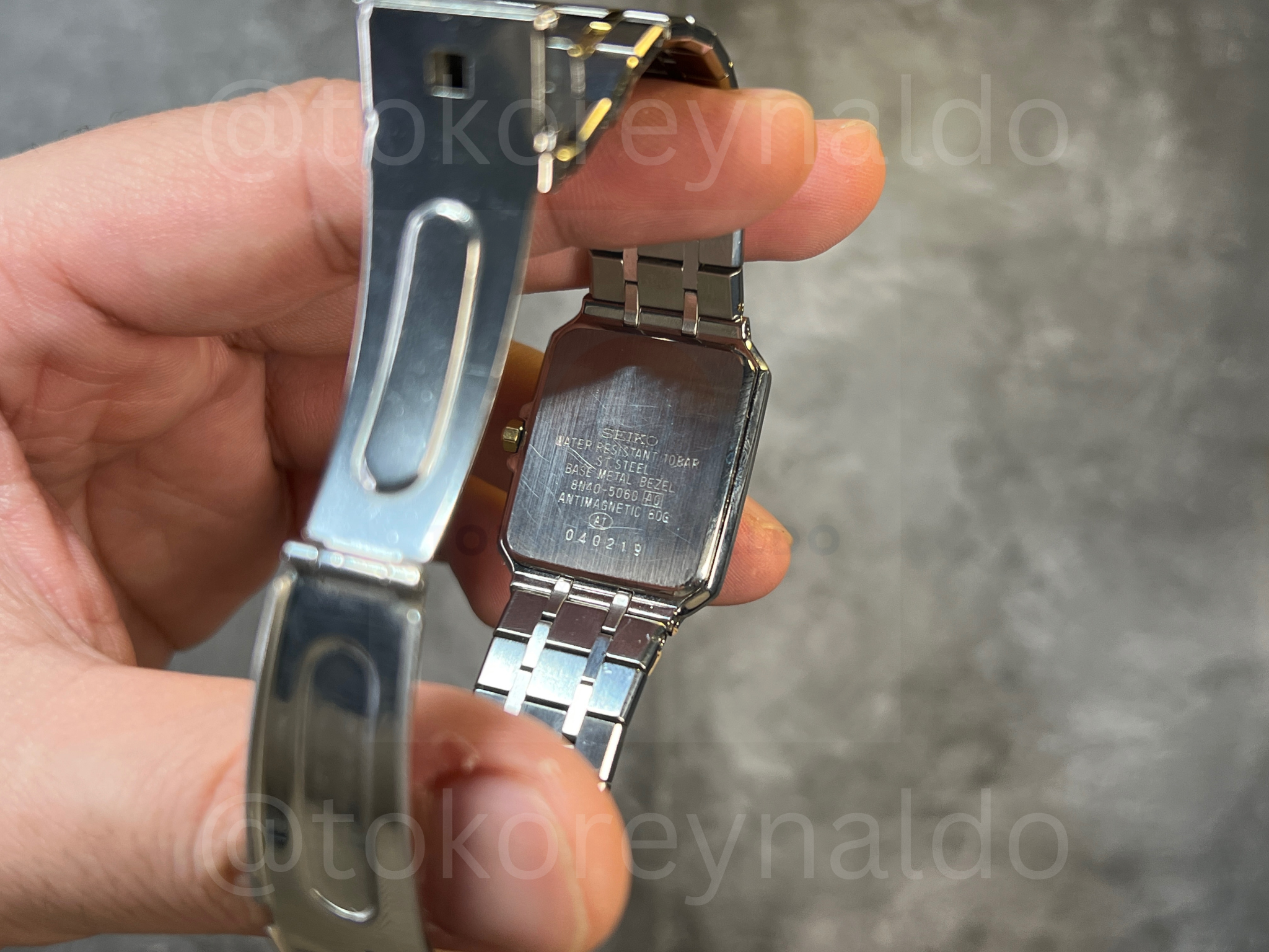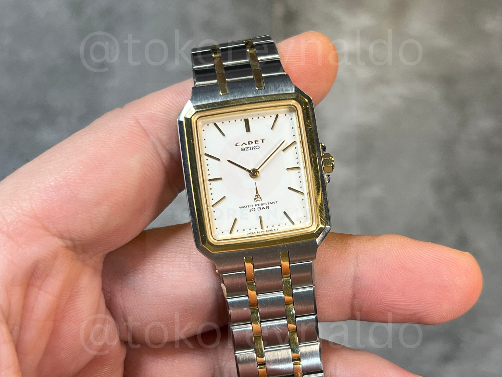 JAM TANGAN VINTAGE SEIKO CADET 8N40-5060 SQUARE TWO TONE WHITE DIAL (LX1942)