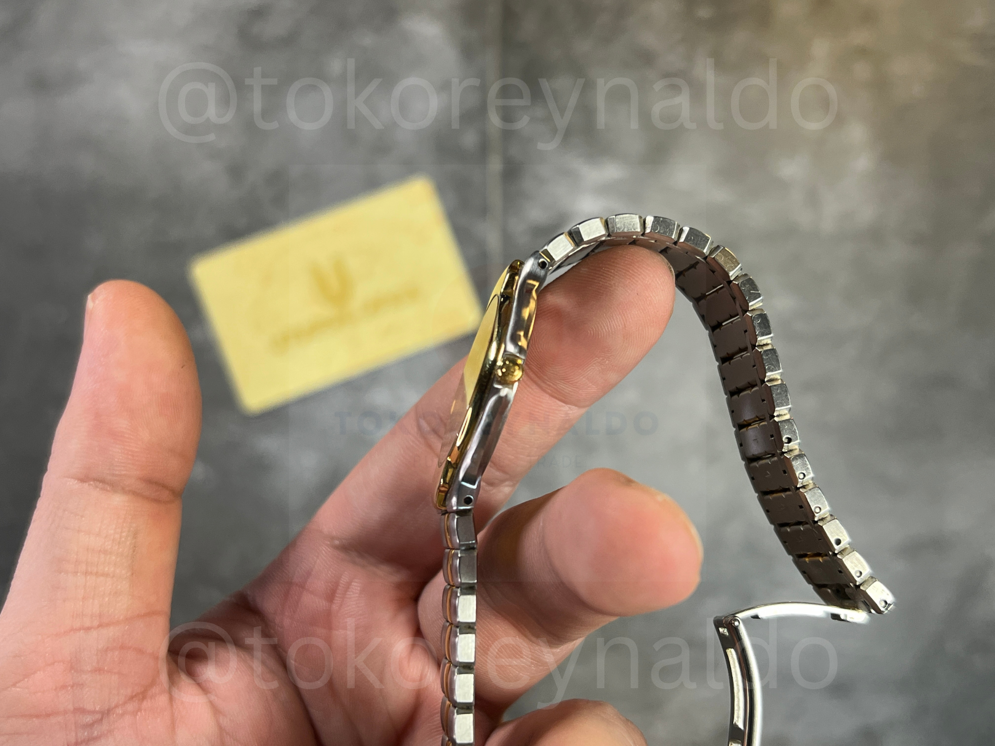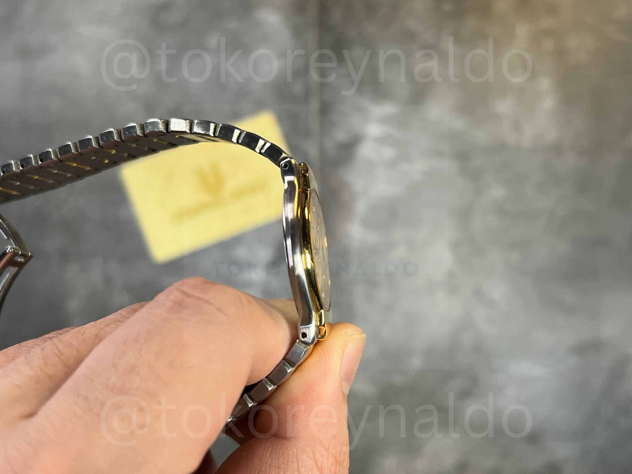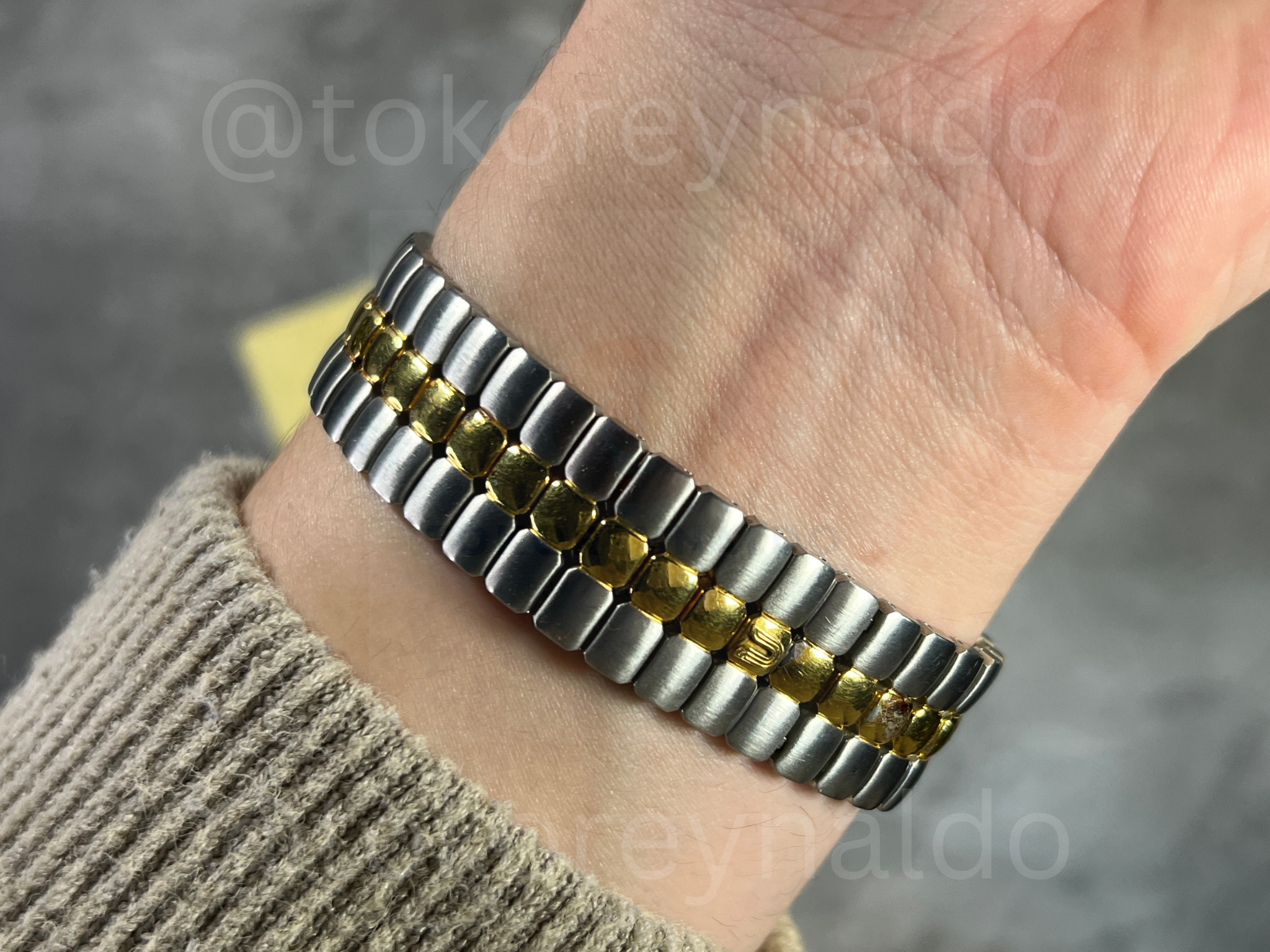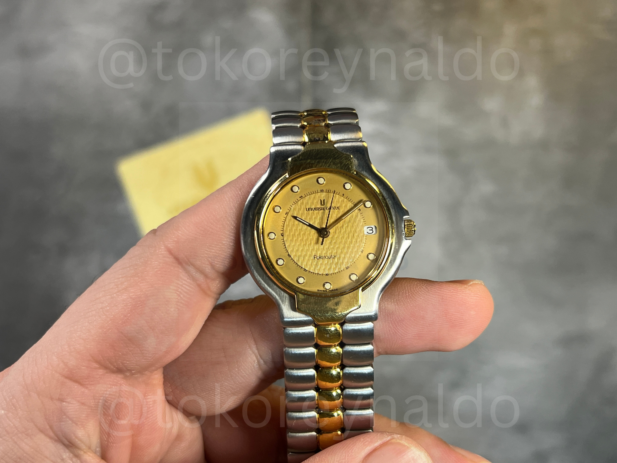 JAM TANGAN VINTAGE UNIVERSAL GENEVE POLEROUTER 677.085 TWO TONE 18K ELECTROPLATED G0LD TEXTURED DIAL DOT INDEX (LX2031)